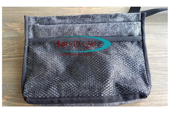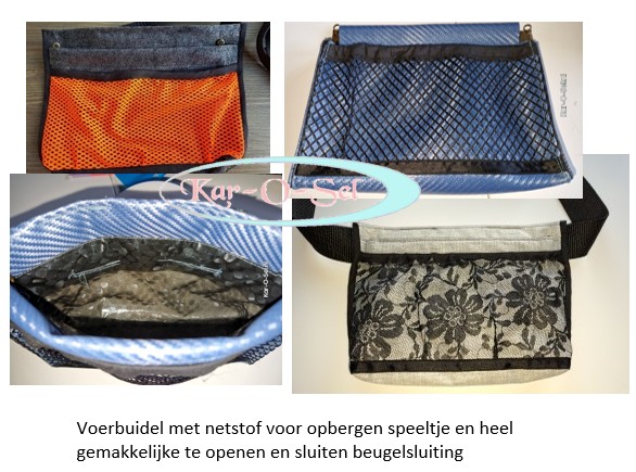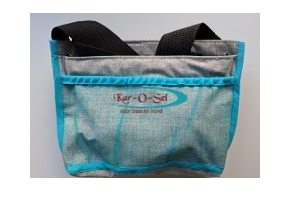 Zeer handige voerbuidel. Draag de buidel om de heupen of om de schouder, door middel van de stevige band met kliksluiting.