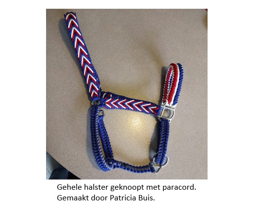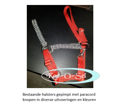 Diverse knopen in vele kleuren mogelijk. Ook een heel halster laten maken van geheel paracord is mogelijk.